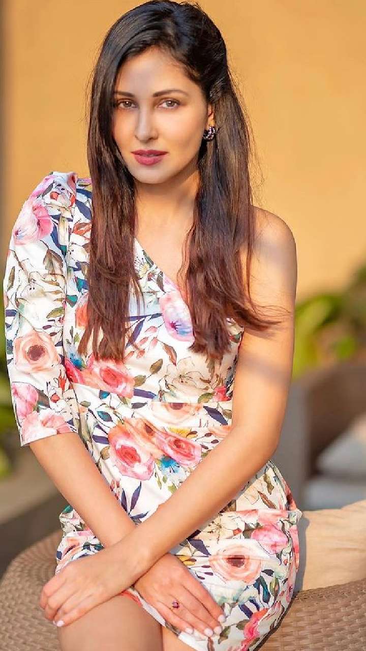 वन साइड शोल्डर ड्रेस में पूजा चोपड़ा परफेक्ट पार्टी वाइब दे रही है।
