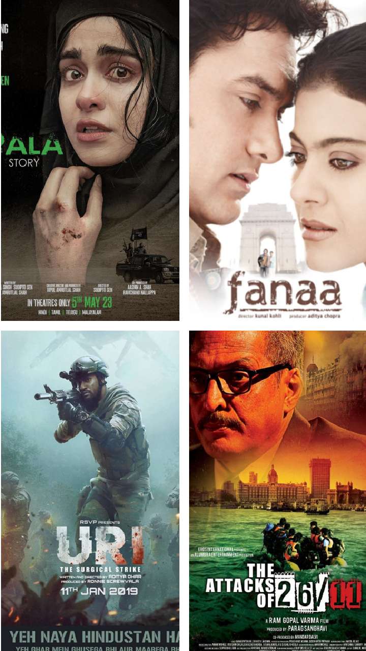 बॉलीवुड की कई ऐसी फिल्मे हैं जहां आतंकवाद का घिनौना चेहरा दिखाया गया है।