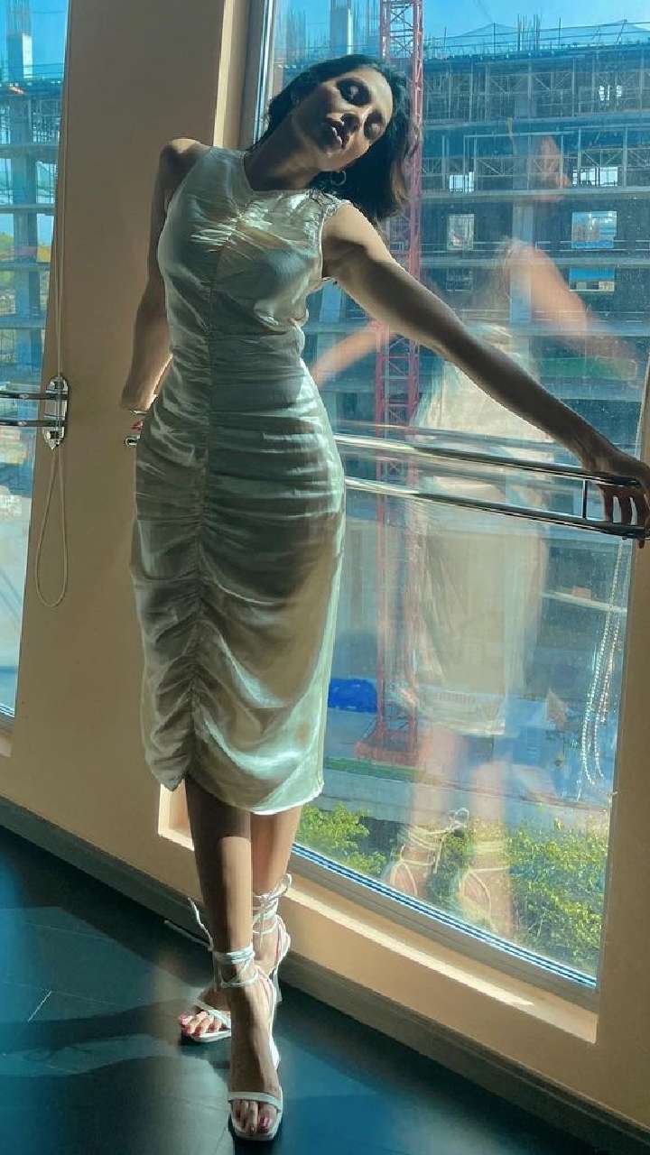 एक्ट्रेस की ये व्हाइट बॉडीकॉन ड्रेस भी पार्टी में चार चांद लगा देगी। इस लुक को एक्ट्रेस ने व्हाइट हील्स के साथ कंप्लीट किया है।