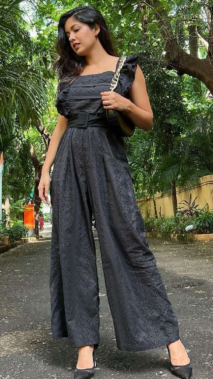 सिंपल सोबर और कैजुअल लुक के लिए आप इशिता दत्ता का ये ब्लैक जम्पसूट भी कैरी कर सकते हैं।