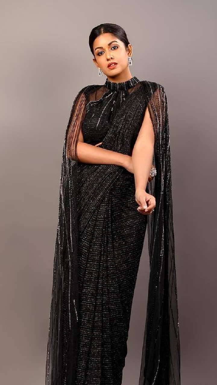 अगर आप भी ब्लैक लवर हैं तो एक्ट्रेस की ये शिमरी ब्लैक साड़ी आप किसी भी फंक्शन में कैरी कर सकती हैं।