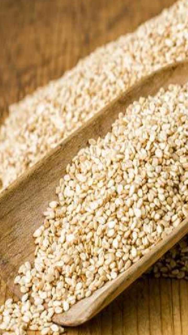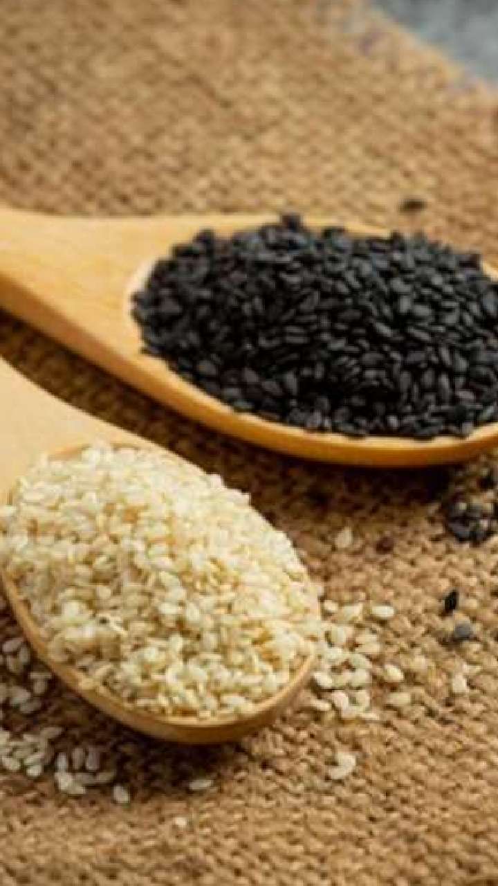 तिल के बीजों में फाइबर, प्रोटीन: 5, मोनोअनसैचुरेटेड फैटी एसिड, ओमेगा-6 फैटी एसिड, कॉपर, मैंगनीज, मैग्नीशियम शामिल हैं। ये सभी मिलकर कोलेस्ट्रॉल को घटाते हैं।