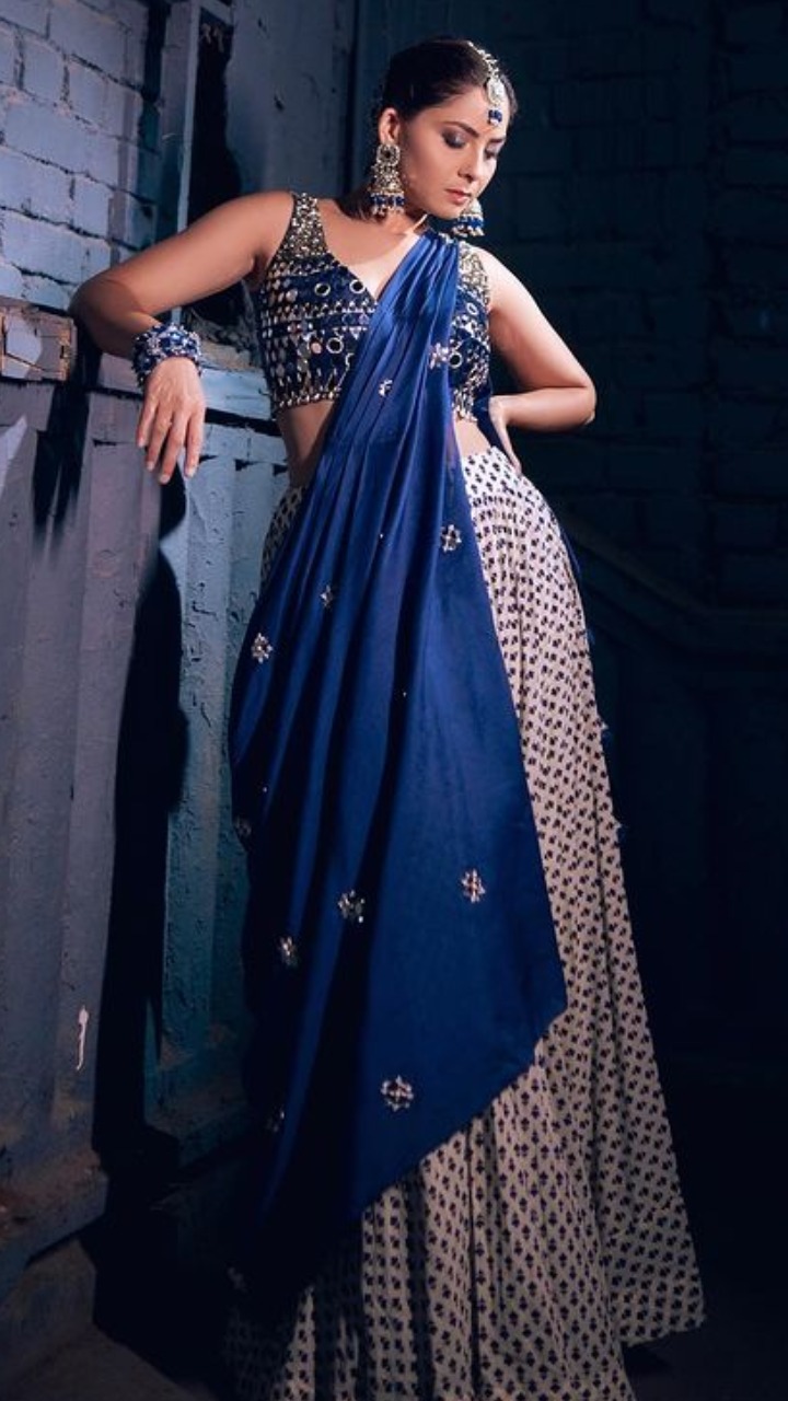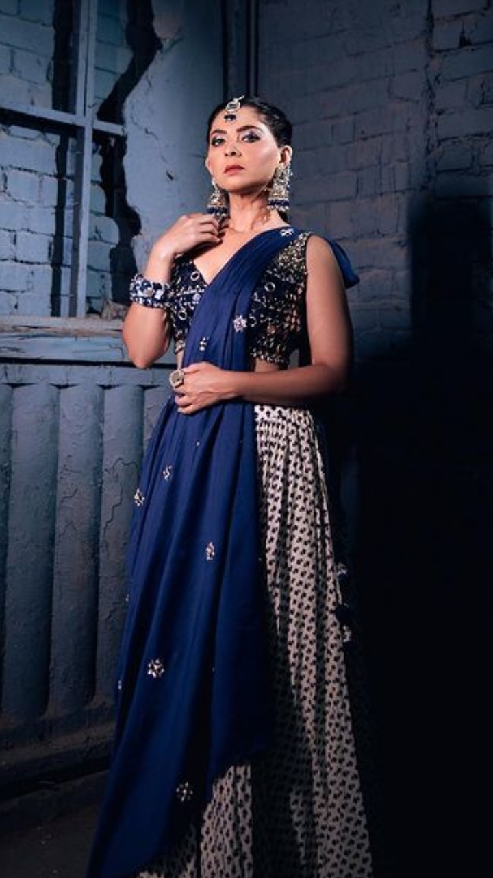 सोनाली कुलकर्णी ने ब्लू कलर के लहंगे में फोटो शेयर की है जिसमे वो बेहद सुन्दर लग रही हैं।