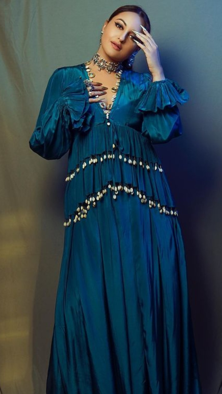 ब्लैक लवर्स के लिए सोनाक्षी सिन्हा का यह आउटफिट परफेक्ट हैं। पोल्का डॉट और ऑक्सिडाइज ज्वेलरी के साथ एक्ट्रेस कमाल की लग रही हैं।