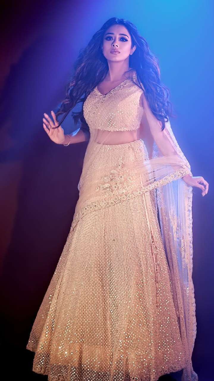अभिनेत्री ने ऑल व्हाइट ग्लिटरी लहंगे वी नेक चोली में अपना गॉर्जियस लेटेस्ट लुक शेयर किया है। जिसमें वो कहर ढहा रही हैं।