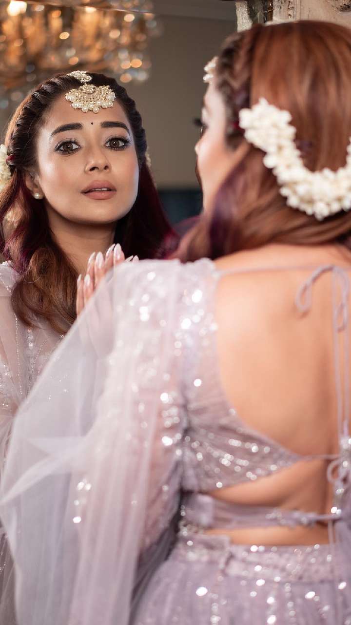 आप टीना की तरह फ्रंट में फ्रेंच चोटी के साथ हाफ हेयर में गजरा हेयर स्टाइल को किसी भी लहंगे या साड़ी के साथ पेयर कर सकती हैं।