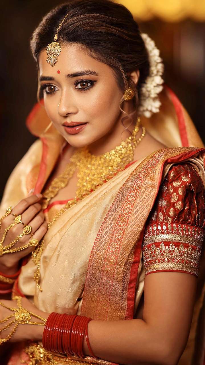 बनारसी और सिल्क साड़ियों के साथ टीना की तरह गजरा बन हेयर स्टाइल एकदम रॉयल लुक देती हैं।