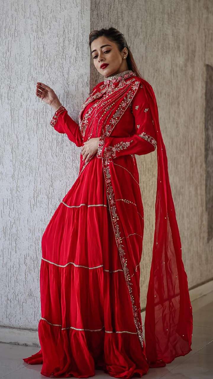 हिंदू मान्यताओं के अनुसार लाल रंग शुभ माना जाता है। आप भी टीना की तरह ही लाल साड़ी कैरी कर सकती हैं।