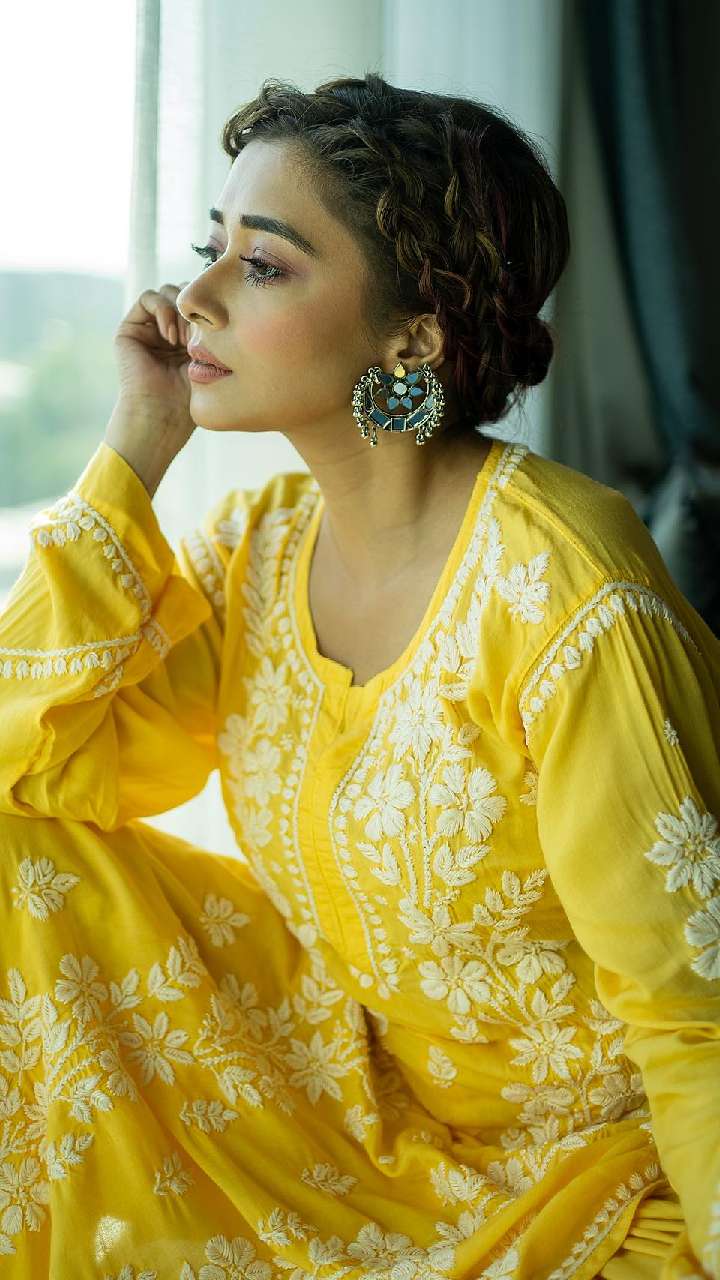 गर्मी में इस तरह के चिकनकारी सूट डिजाइन खूब ट्रेंड में रहते हैं। आप भी एक्ट्रेस के इस लुक को रिक्रिएट कर सकती हैं।