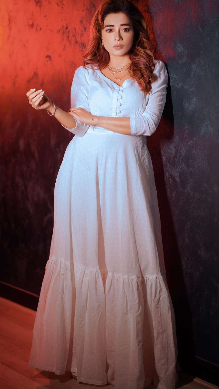 अगर आप सिंपल सोबर लुक कैरी करना पसंद करती हैं तो आप टीना दत्ता की तरह ही प्लेन व्हाइट सूट को स्टाइल कर सकती हैं।