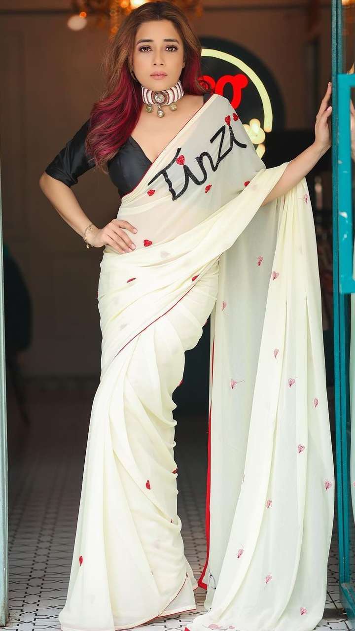 टीना का ये अट्रैक्टिव साड़ी लुक बेहद शानदार है। जिसपर एक्ट्रेस ने अपना निक नेम लिखवाया है।