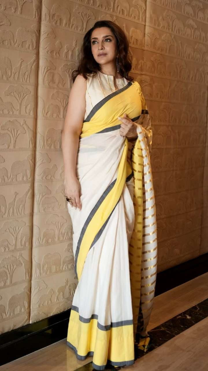 अगर आप कम्फर्टेबल लुक कैरी करना चाहती हैं तो आप टिस्का चोपड़ा की तरह ही कॉटन साड़ी पहन सकती हैं।
