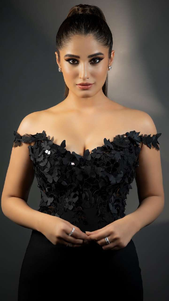 ब्लैक कलर पर्सनैलिटी को काफी एन्हांस और क्लासी लुक देता है। 19 साल की राशा इस ऑफ शोल्डर ड्रेस के साथ शाइनी मेकअप में काफी क्लासी लग रही हैं।