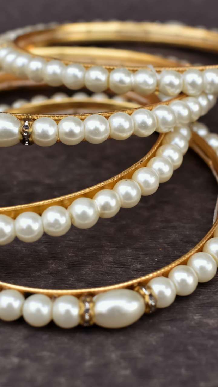 अगर आप सिंपल और क्लासी लुक चाहती हैं, तो आप पर्ल की चूड़ियां पहन सकती हैं। इस तरह की चूड़ियां आपके लुक पर चार चांद लगा देंगे।