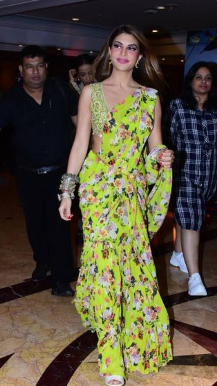 जैकलीन पर इंडियन लुक काफी सूट करता है। इस हल्के ग्रीन रंग की फ्लोरल प्रिंट वाली साडी में जैकलीन बेहद सुंदर दिख रही हैं।