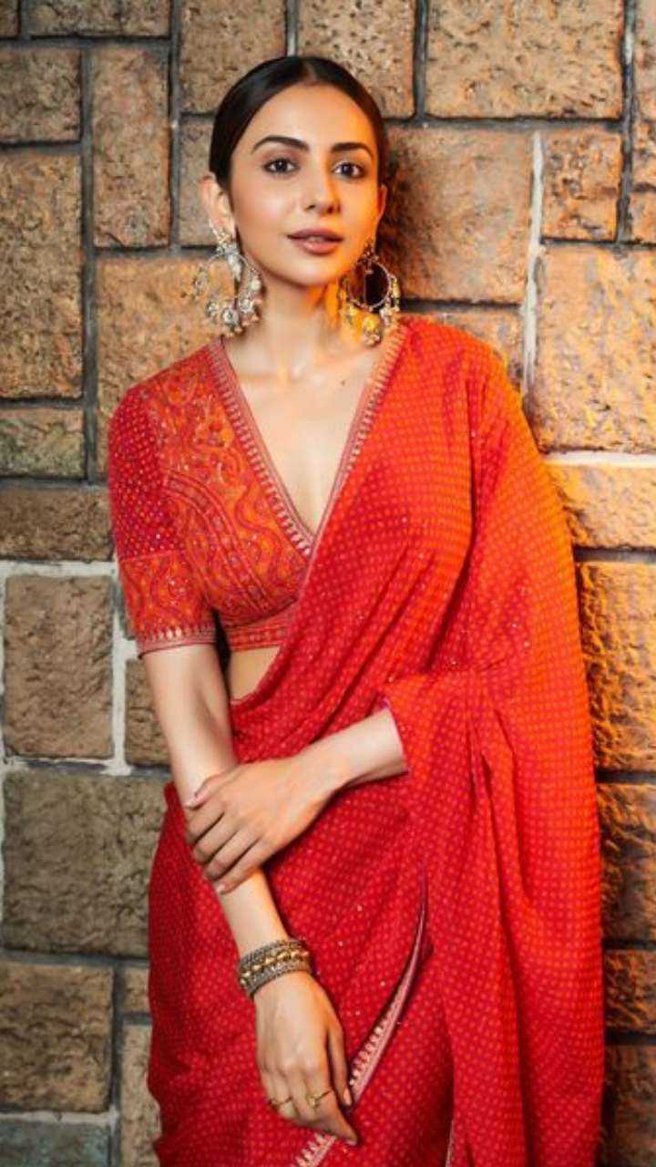 एक्ट्रेस रकुल प्रीत को भी आपने कई बार इंडियन लुक में देखा होगा। रेड साड़ी वाले इस फोटो में रकुल का सिजलिंग अवतार सबके होश उड़ा रहा है।