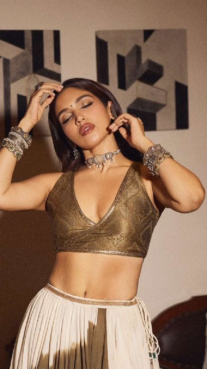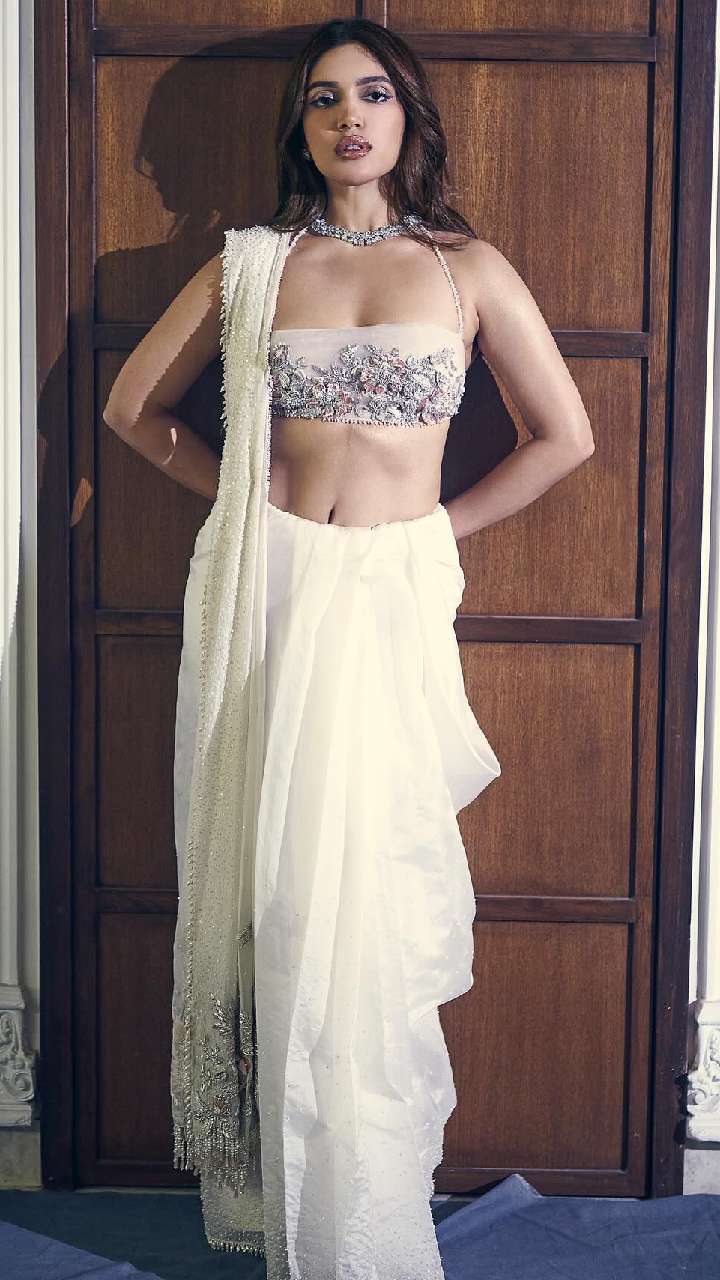 भूमि पेडनेकर हमेशा ही अपने हॉट लुक्स की वजह से चर्चा में बनी रहती हैं। एक्ट्रेस ने इस साड़ी के साथ नूडल स्ट्रैप ब्लाउज पेयर किया है।
