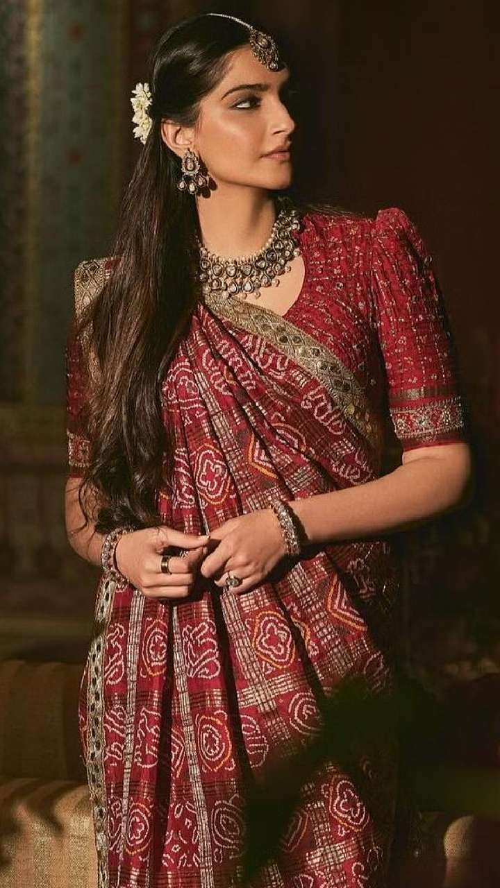 सोनम कपूर का फैशन सेंस शानदार है। सीधे पल्ले की साड़ी के साथ एक्ट्रेस ने बैलून स्लीव्स वाले ब्लाउज को पेयर किया है।