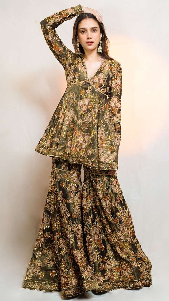 इस खास मौके पर कुछ हटके ट्राई करना चाहती हैं, तो शरारा सूट एक बेहतर ऑप्शन है। ये पहनने में काफी आरामदायक होता है।