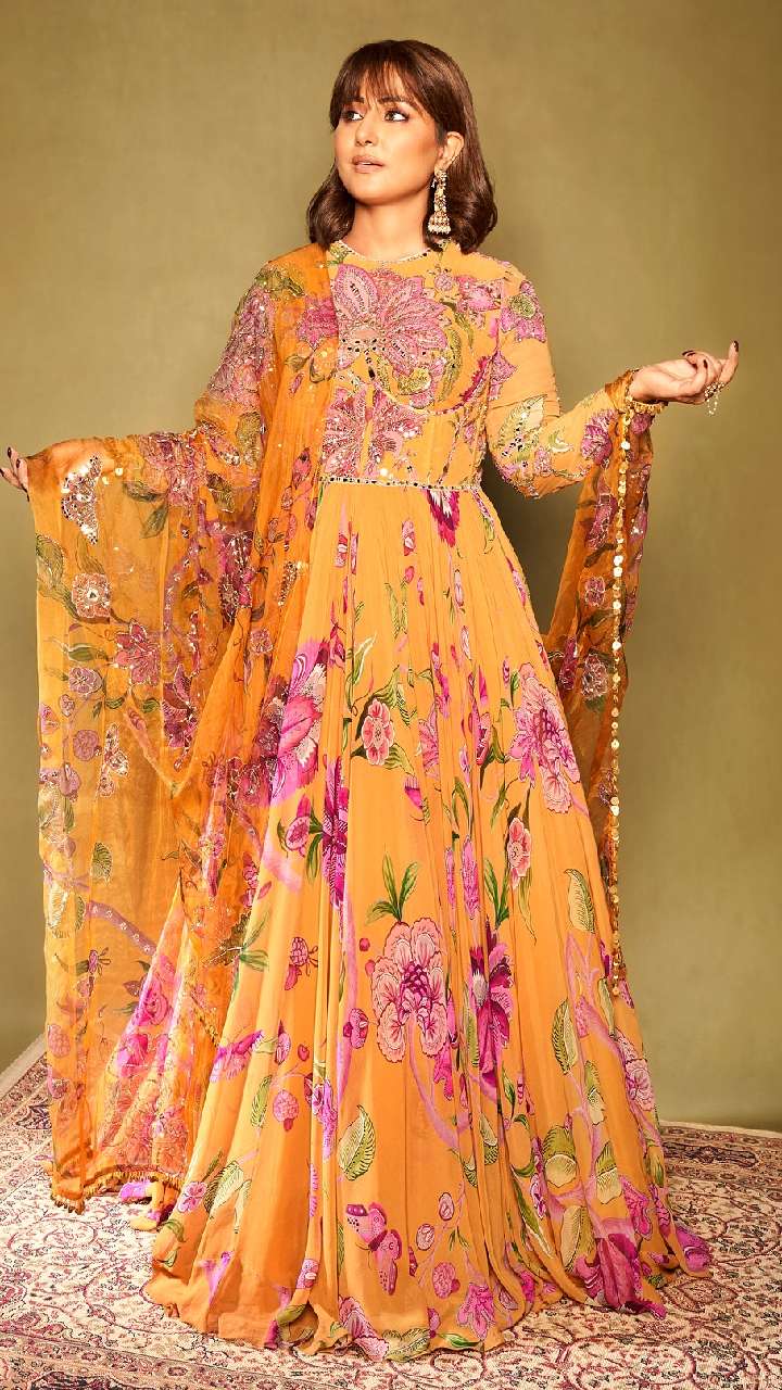 बैसाखी पर सबसे शानदार दिखने के लिए फ्लोरल प्रिंटेड अनारकली सूट से बेस्ट ऑप्शन कुछ भी नहीं है। इसके साथ हैवी इयररिंग कैरी करना न भूलें।