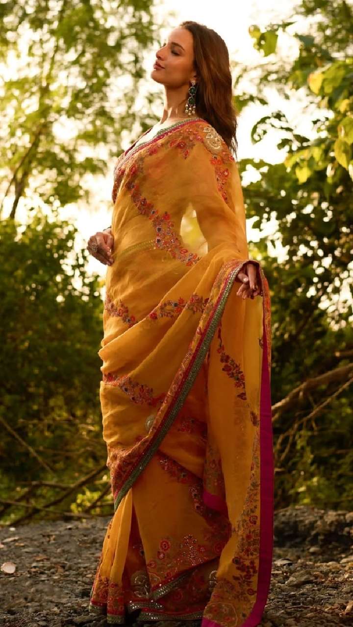 यह साड़ी बेहद खूबसूरत और एलिगेंट लग रही है। इसमें तृप्ति डिमरी काफी प्यारी और सोबर दिखाई दे रही हैं। इसके साथ उन्होंने हैवी झुमके पहने हुए हैं, जो इस लुक को काफी कॉम्प्लीमेंट कर रहे हैं।