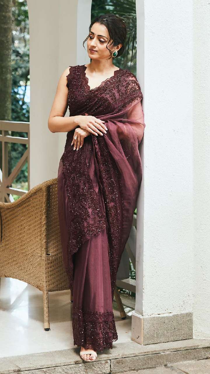 प्रिंटेड साड़ियां काफी क्लासी लुक देती है। आप भी तृषा की तरह प्रिंटेड साड़ी स्टाइल करके गॉर्जियस लग सकती हैं।
