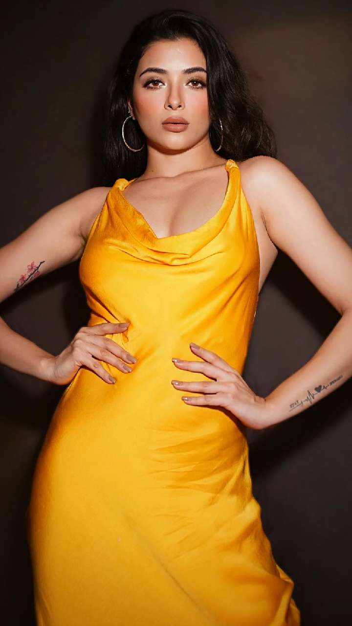 येलो साटिन ड्रेस में एक्ट्रेस कहर ढा रही हैं। यंग गर्ल्स बर्थडे पार्टी या क्लब पार्टी में सेसी लुक को अट्रैक्टिव बनाने के लिए इस ड्रेस को स्टाइल कर सकती हैं।