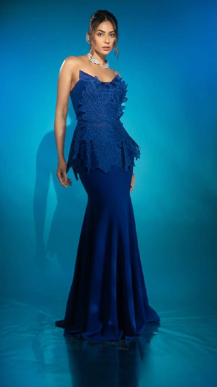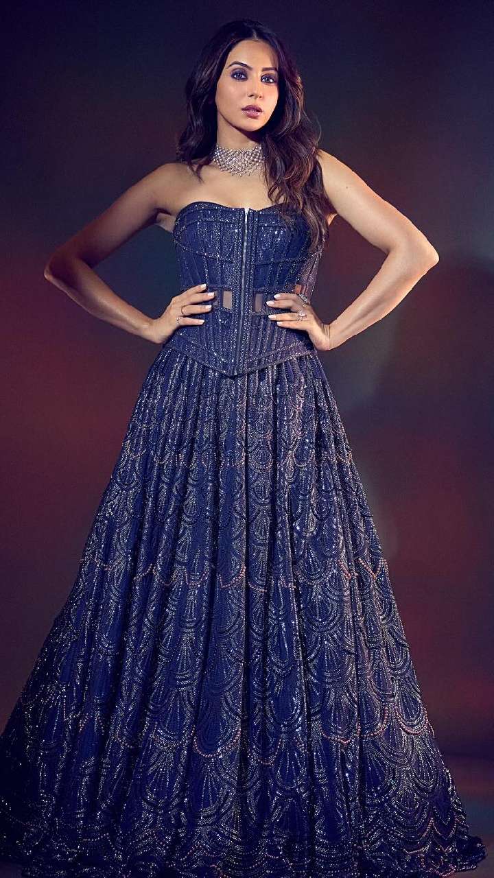 ब्लू गाउन में एक्ट्रेस हॉट लग रही है। शादी के बाद भी हॉट और ग्लैमरस दिखने के लिए आप इस डिजाइनर गाउन को कैरी कर सकती हैं।
