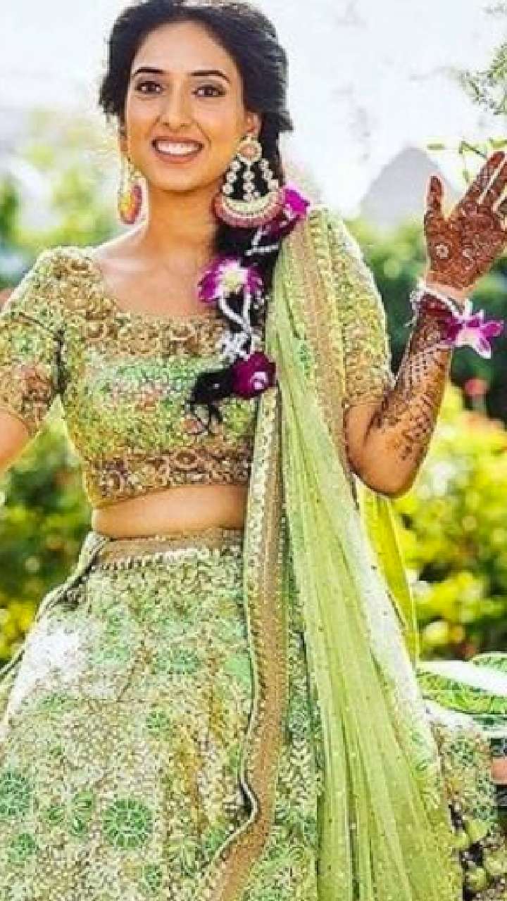 लहंगा शादी के हर एक फंक्शन के लिए है परफेक्ट आउटफिट। तो मेहंदी फंक्शन के लिए ग्रीन शिमरी लहंगा पहनें और पाएं हर किसी की तारीफ।
