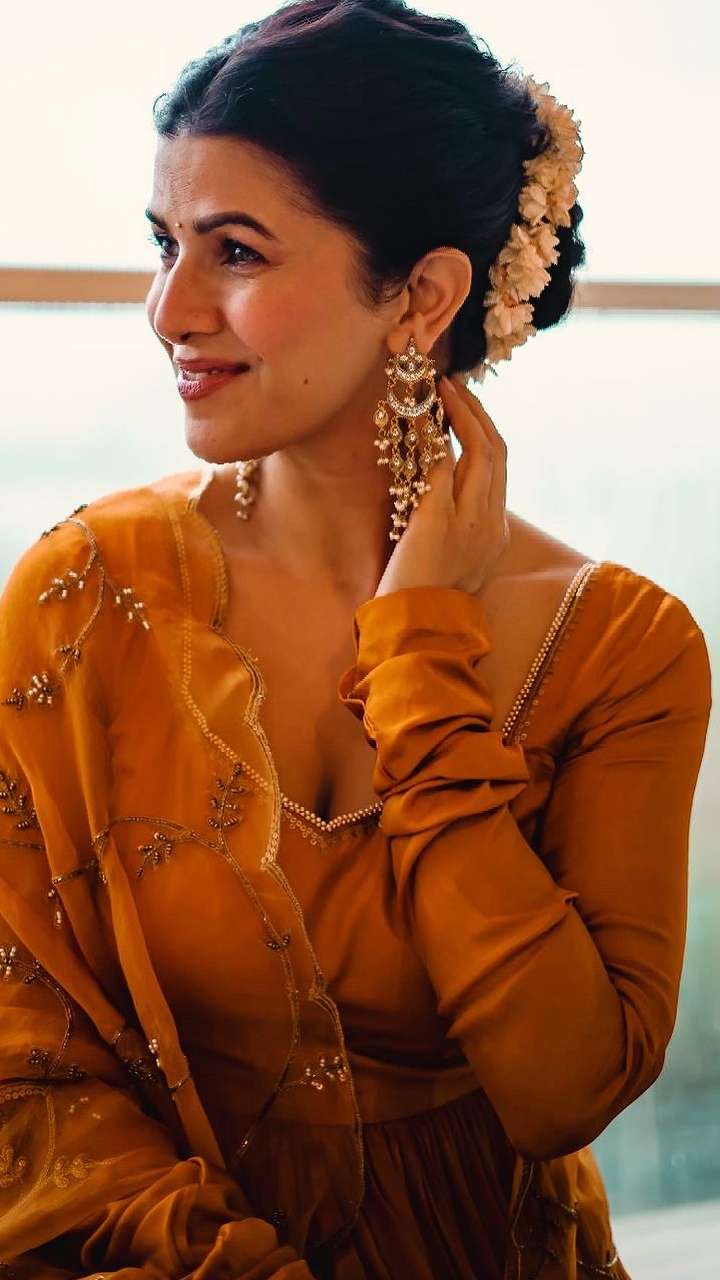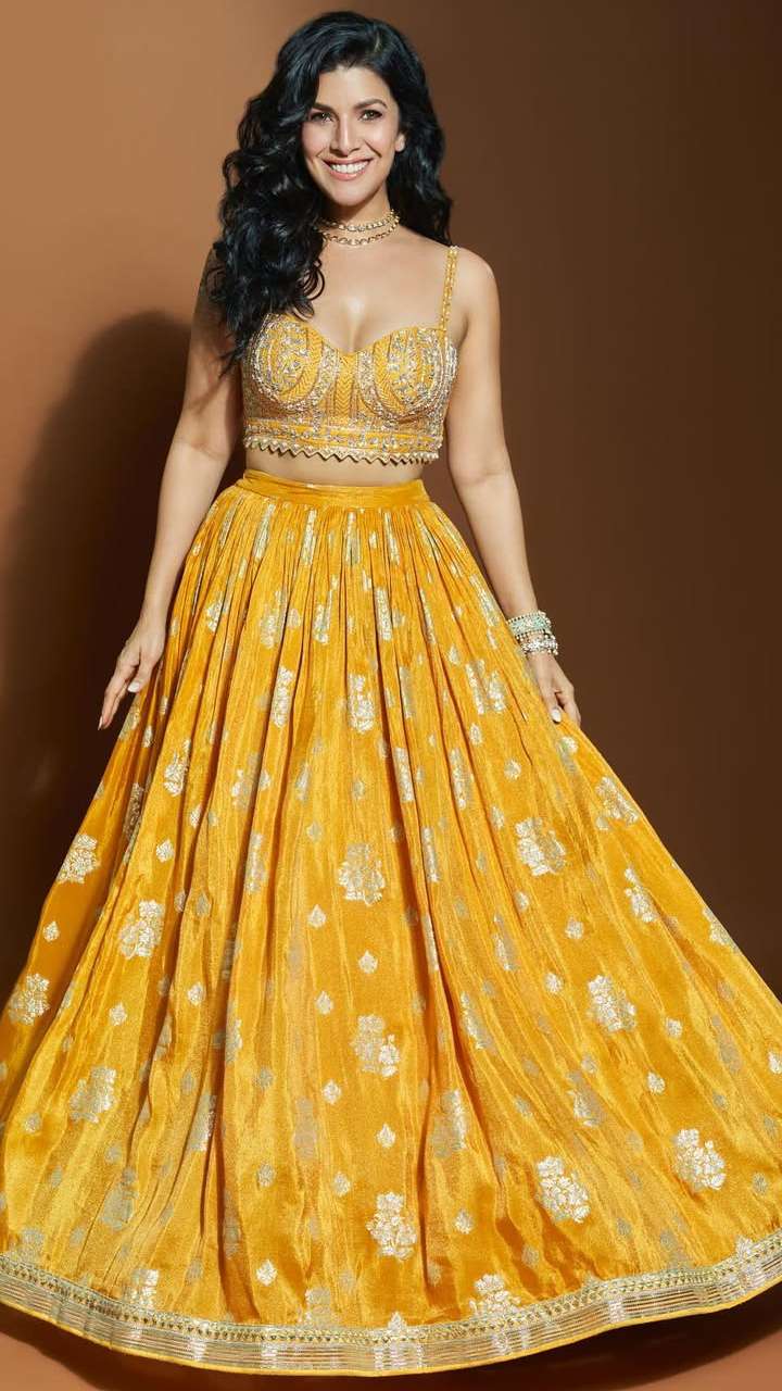 एक्ट्रेस इस लहंगे में रानी जैसी लग रही हैं। एक्ट्रेस के लहंगे का येलो कलर यंग गर्ल्स के साथ शादी शुदा महिलाओं पर काफी निखर कर आएगा। आप इसके साथ डायमंड का नेकलेस और मांग टिक्का पहनकर अपने लुक में चार चांद लगा सकती हैं।
