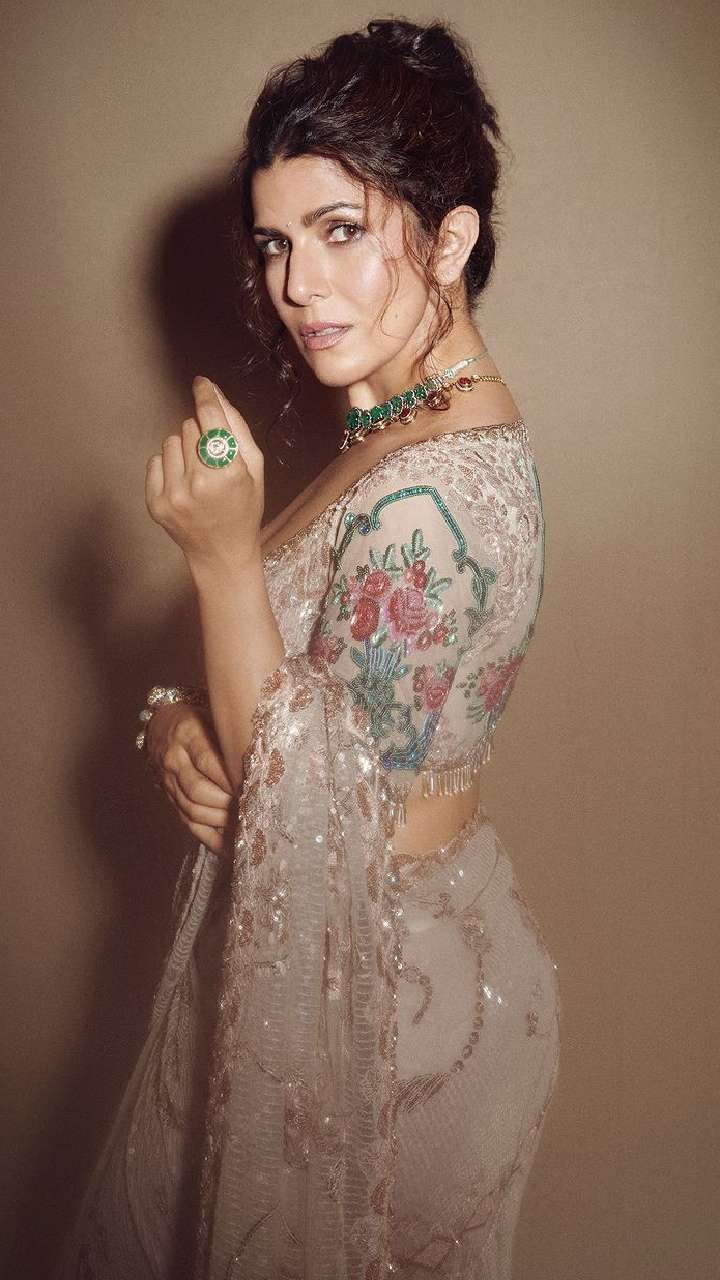एक्ट्रेस का डीप वी- कट डिजाइन वाला ब्लाउज और ट्रेंडिंग स्टाइल साड़ी को एक एलिगेंट लुक दे रहा है। इस साड़ी को आप किसी भी खास मौके पर पहनकर जा सकती हैं, जो लोगों को काफी अट्रैक्ट करेगा।