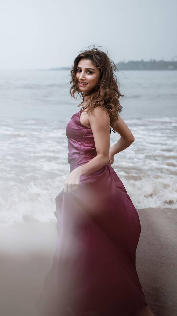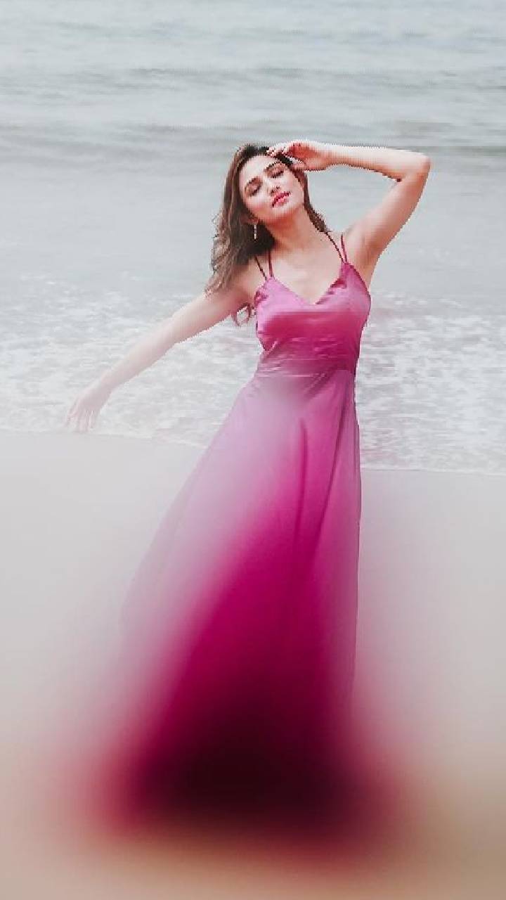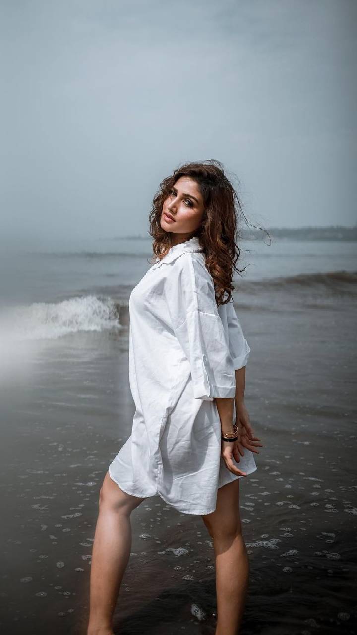 डोनल बिष्ट बीच किनारें मस्तीभरें मूड में दिख रही हैं।