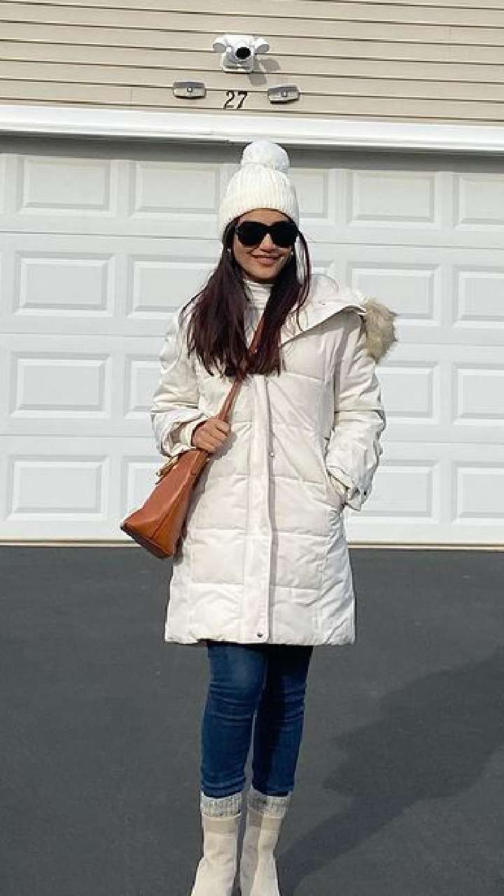 सुरभि ज्योति का व्हाइट लॉन्ग जैकेट इस विंटर पर कैरी करने के लिए परफेक्ट हैं।