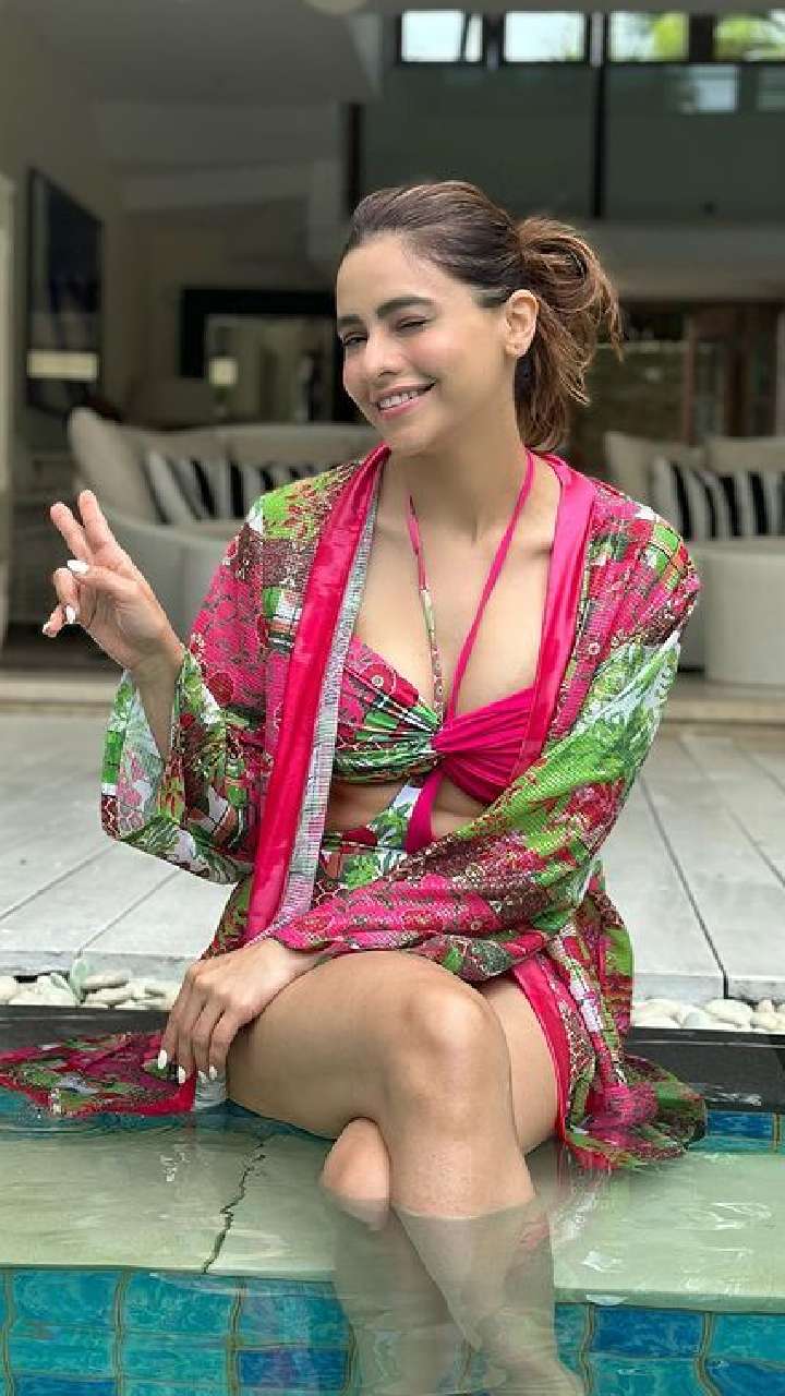 पॉपुलर एक्ट्रेस आमना शरीफ बिकिनी पहन अक्सर इंटरनेट पर तहलका मचाती रहती हैं।