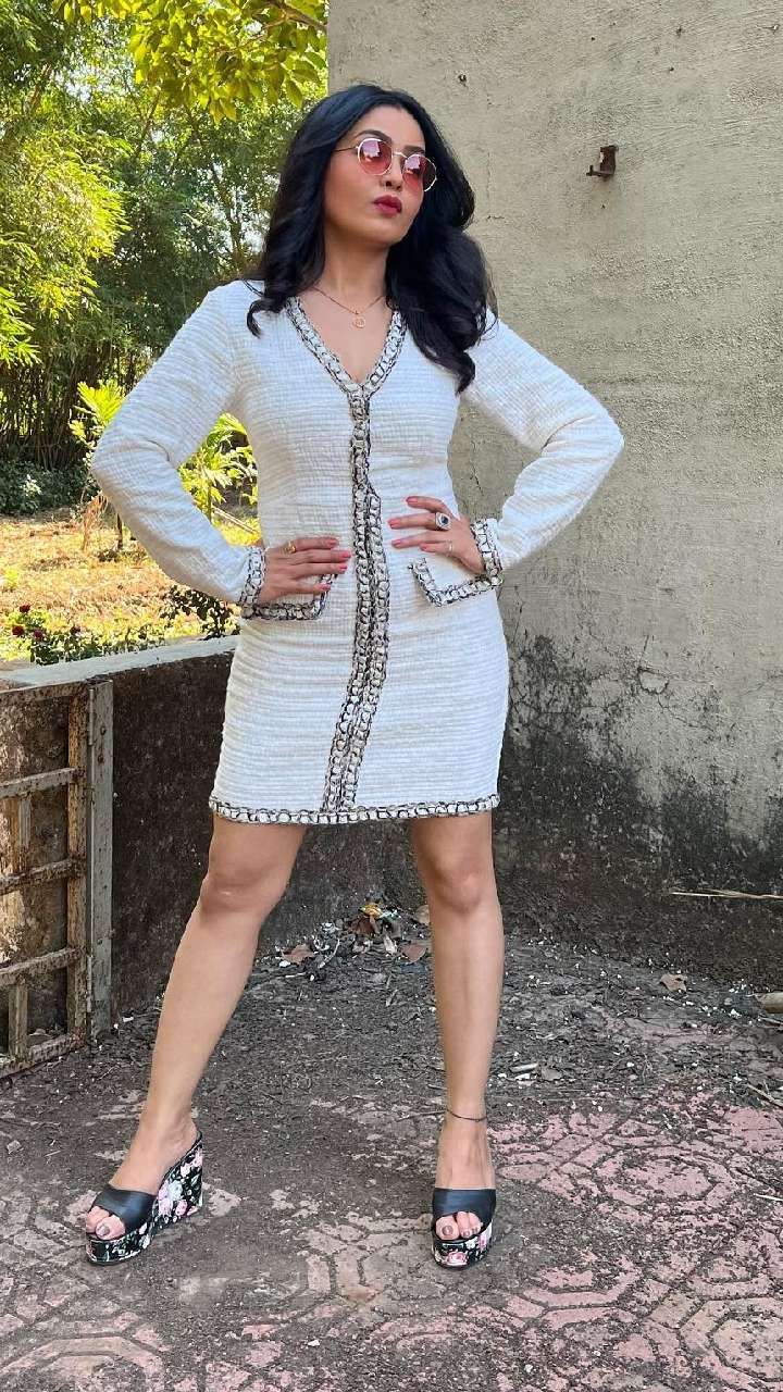 व्हाइट कलर की इस शॉर्ट ड्रेस में अंगूरी भाभी काफी ज्यादा हॉट अवतार में नजर आ रहीं हैं। एक्ट्रेस से आप भी फैशन टिप्स ले सकती हैं।