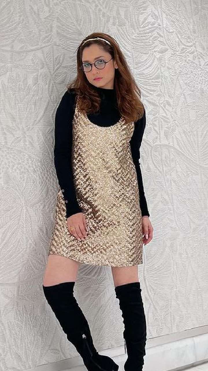 अंकिता लोखांडे शॉर्ट ड्रेस को पहने और जुल्फों को बिखेरती हुई हुस्न की मल्लिका दिख रही हैं।