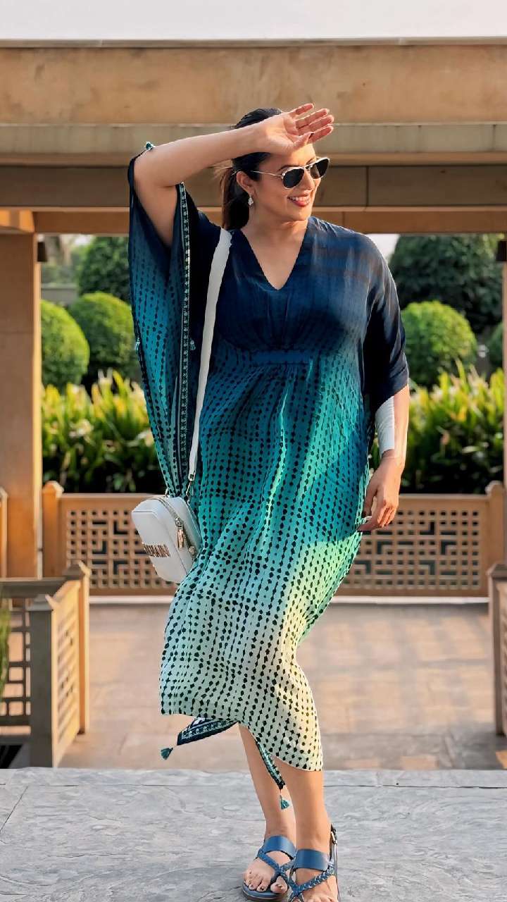 हाल में अभिनेत्री ने डबल शेड काफ्तान स्टाइल ड्रेस में अपना कूल लुक शेयर किया है। जो कि आप ऑफिस और समर वेकेशन दोनों पर पहन सकती हैं।