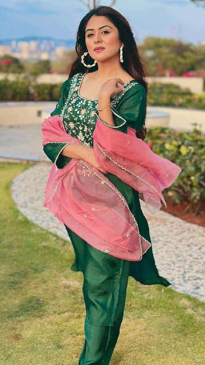 अभिनेत्री ग्रीन कलर के यॉक वर्क कुर्ते पेंट और पिंक नेटिड दुपट्टे में कहर ढहा रही हैं। इसके साथ कोड़ी हूप्स इयररिंग शानदार लग रहे हैं।