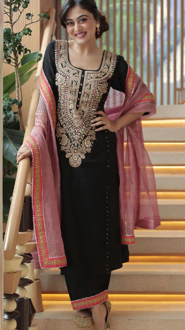 फलक नाज ब्लैक कलर के स्ट्रेट पेंट सूट में काफी ब्यूटीफुल लग रही हैं। वलीमा में इसे कैरी करके आप चांद का टुकड़ा दिखेंगी।
