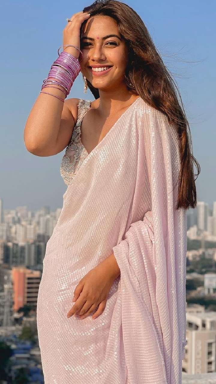 पिंक कलर की साड़ी के साथ एक्ट्रेस ने ब्लैक कलर का ब्लाउस कैरी किया है और काली बिंदी से सबका दिल जीत लिया है।