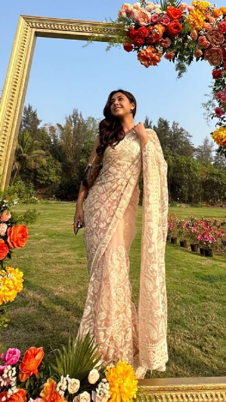 साड़ी लुक को अट्रैक्टिव बनाने के लिए साड़ी के पल्ले को ओपन ही छोड़ दें। एक्ट्रेस के इस लुक से आप इंस्पिरेशन ले सकते हैं।