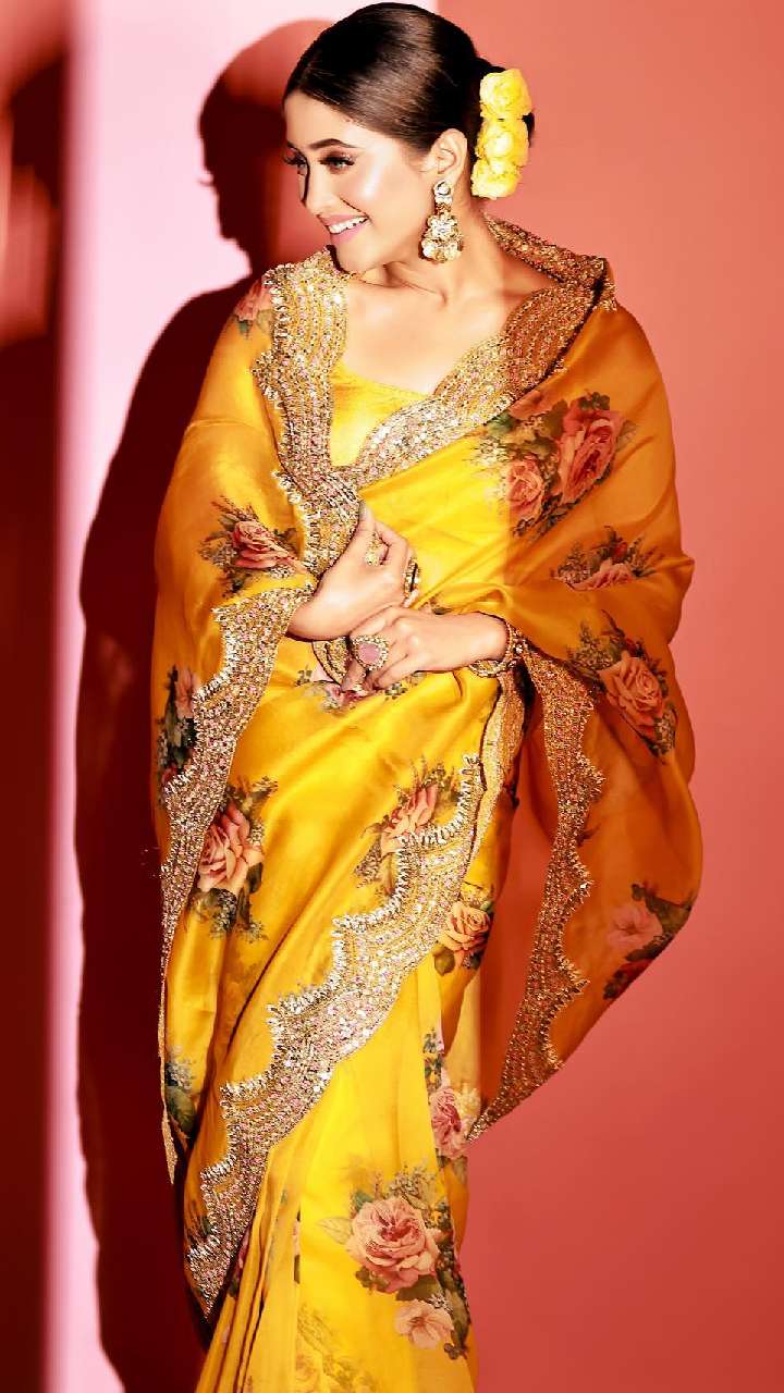 यंग गर्ल्स पर फ्लावर प्रिंटेड साड़ी खूब जचती हैं। आप भी शिवांगी की इस येलो साड़ी लुक से इंस्पिरेशन ले सकती हैं।