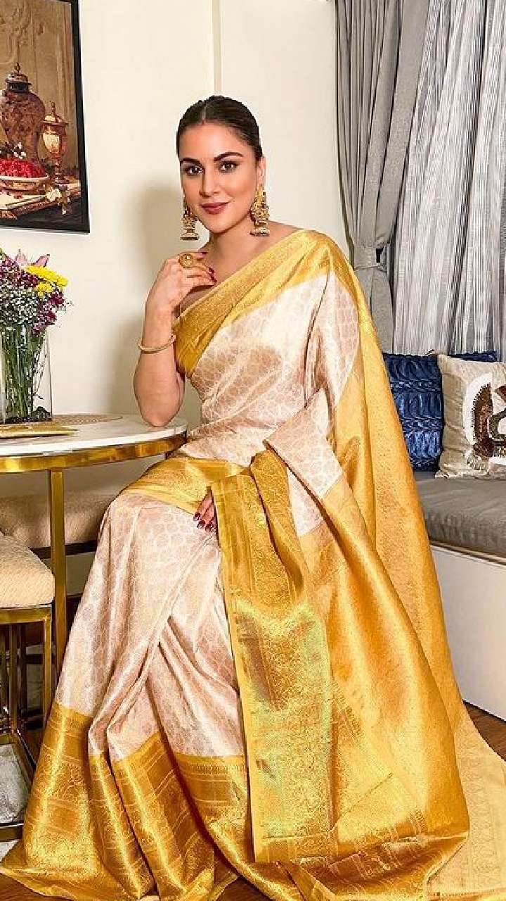 श्रद्धा आर्या का इंडियन लुक साड़ी इस क्रिसमस पर कैरी करने के लिए परफेक्ट हैं।