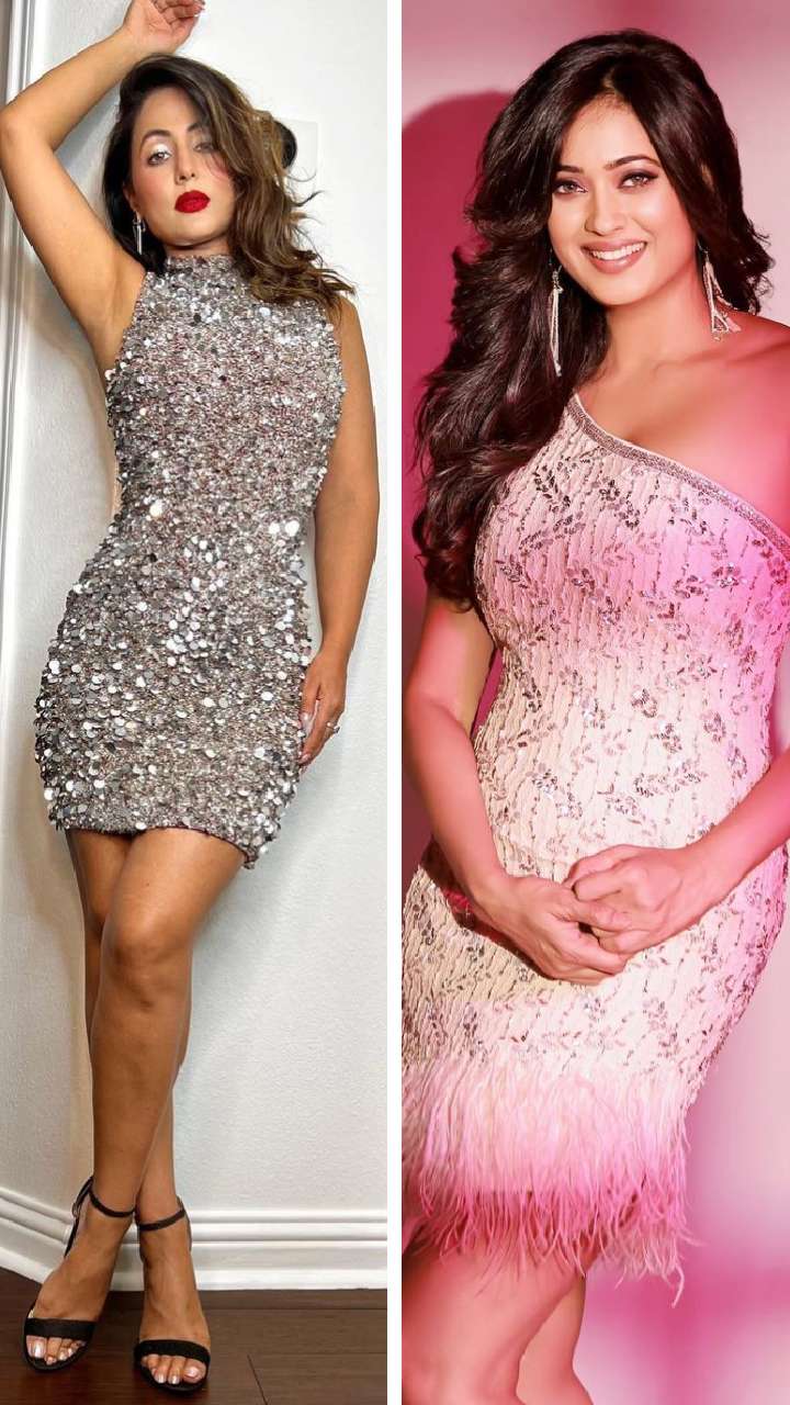 हिना खान का ये सेक्विन ड्रेस लुक पार्टी के लिए एकदम परफेक्ट है।