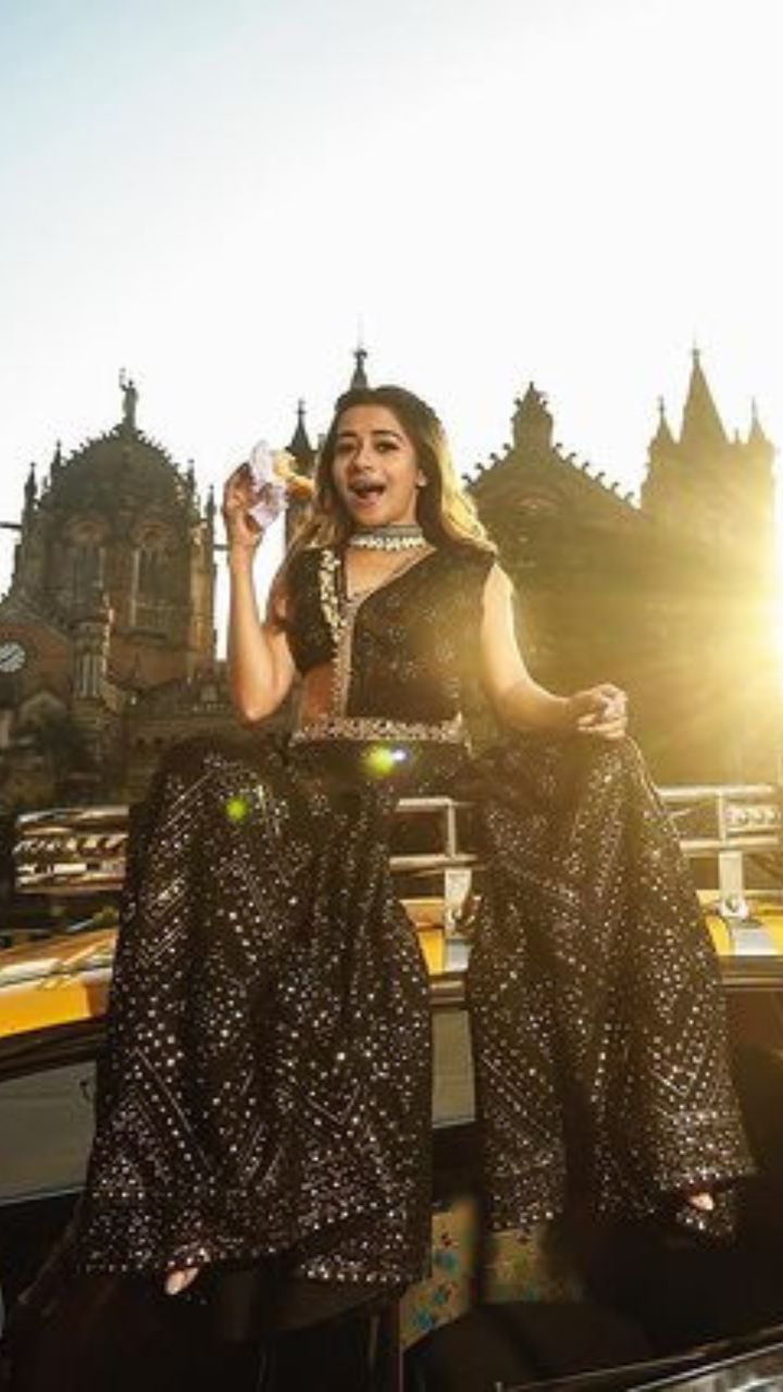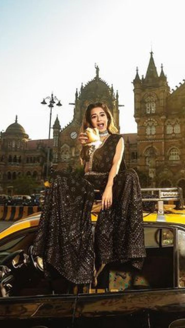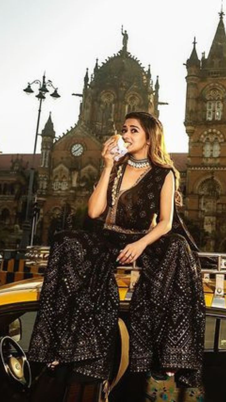 टीना दत्ता ट्रैक्सी पर बैठकर बेहद चार्मिंग पोज दे रही हैं।