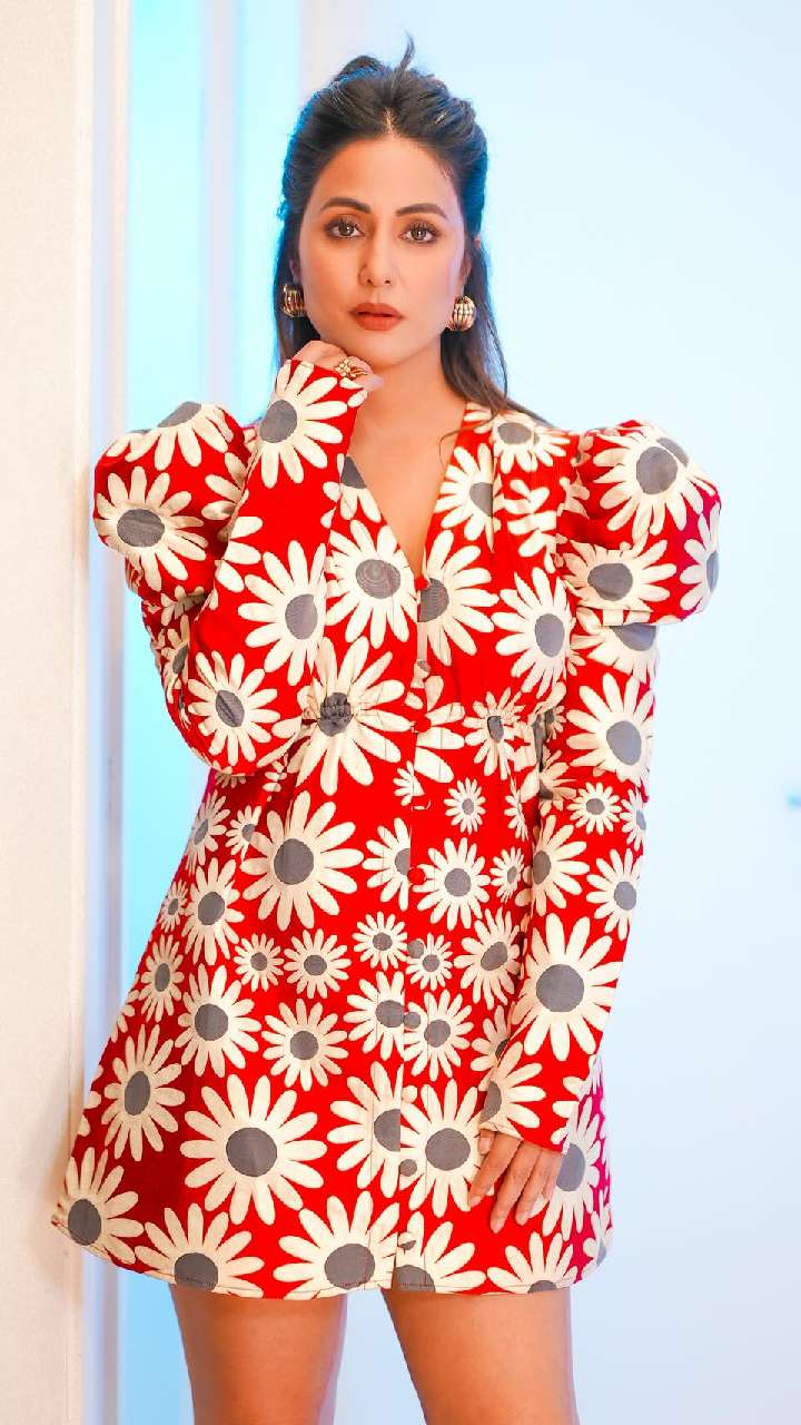 शॉर्ट ड्रेस में हिना खान बहुत हॉट लग रहीं हैं। हिना खान की तरह आप भी अपने पार्टी लुक को शॉर्ट ड्रेस के साथ पूरा कर सकती हैं।