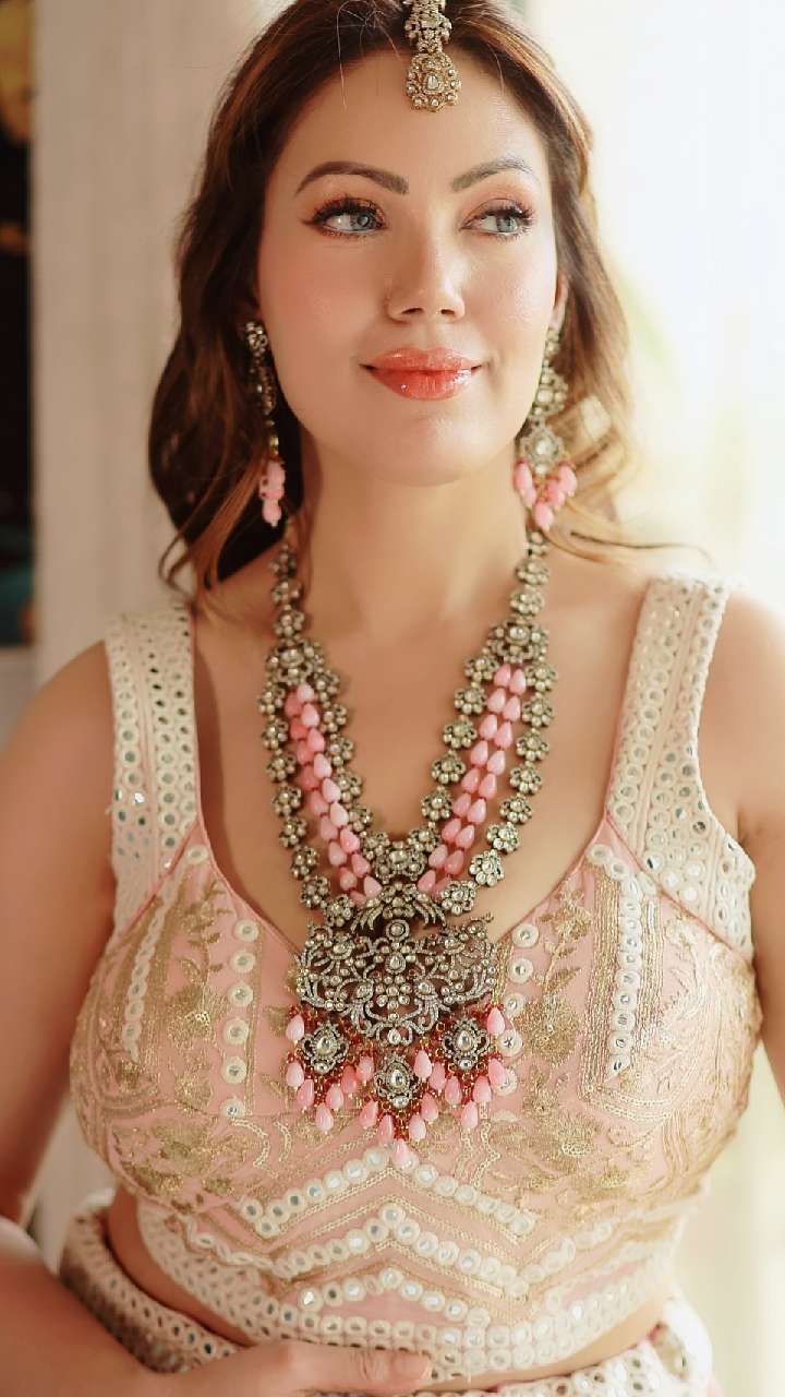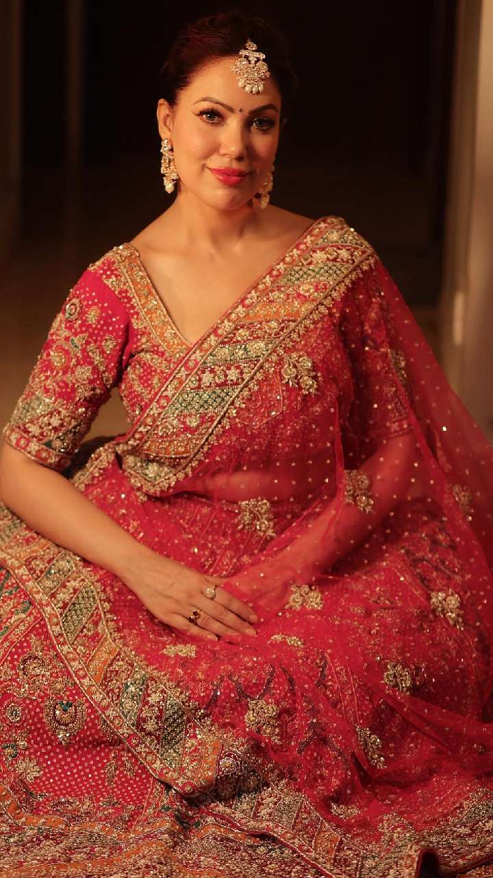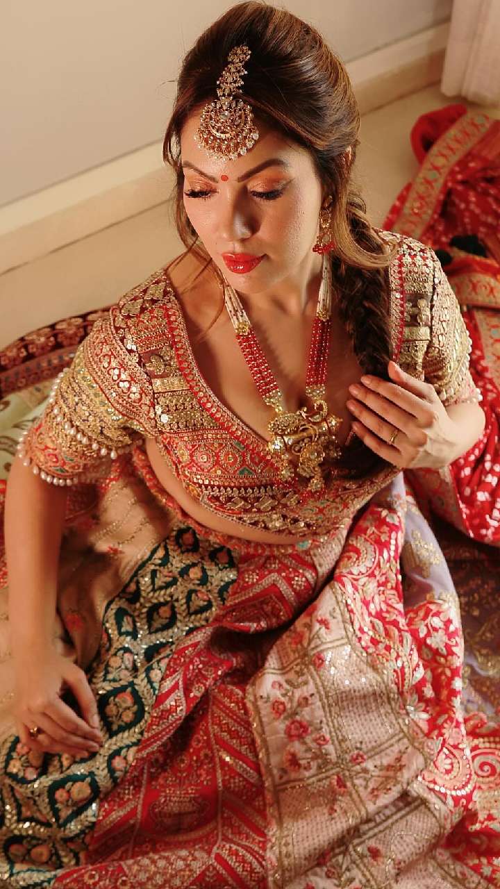 एक्ट्रेस ने इंस्टाग्राम पर पिंक कलर के हेवी वर्क लहंगे मांग टीका में अपना गॉर्जियस लुक शेयर किया है। ब्राइडल उनके इस लुक को कॉपी कर सकती हैं।