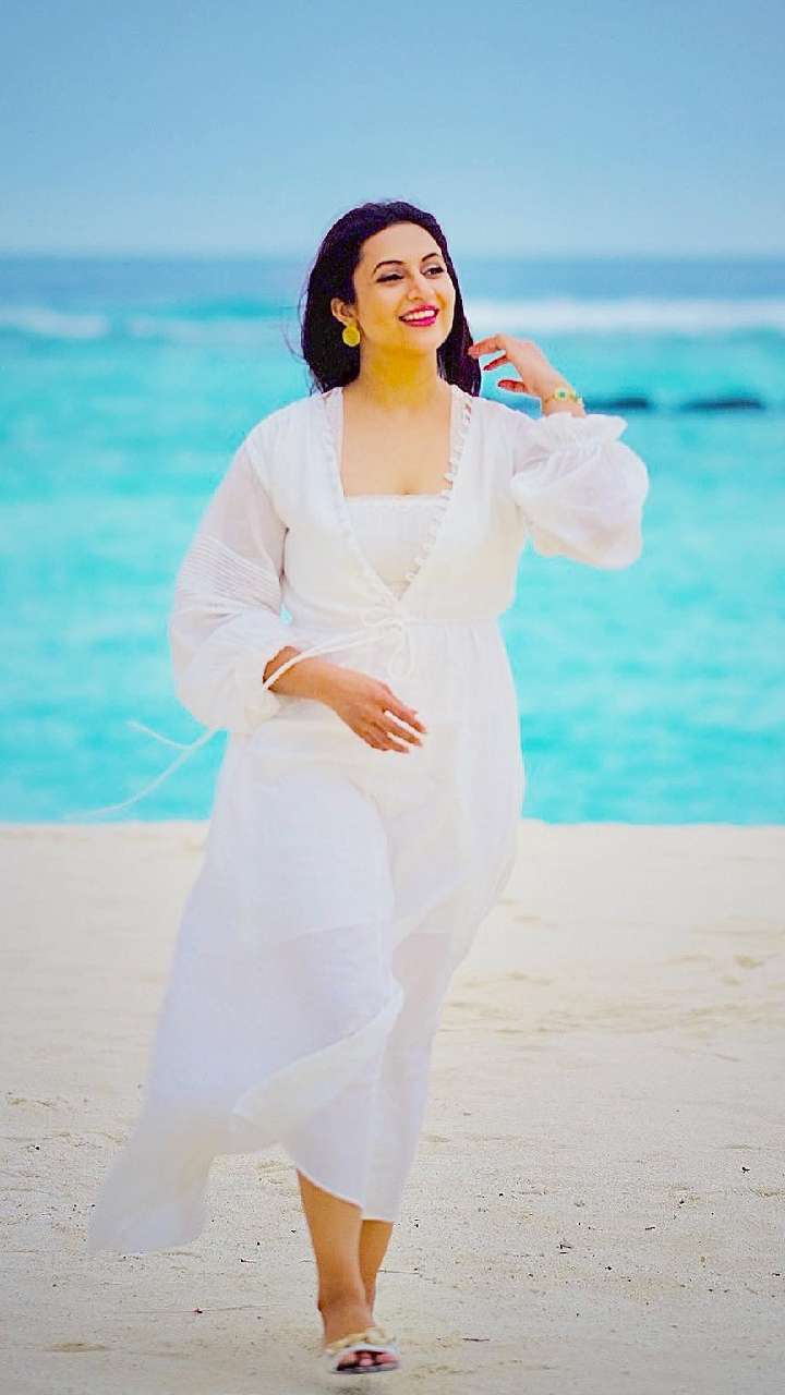 इस व्हाइट कलर की शार्ट ड्रेस में दिव्यांका समुन्दर किनारे स्टाइलिश पोज देती नजर आ रही हैं।