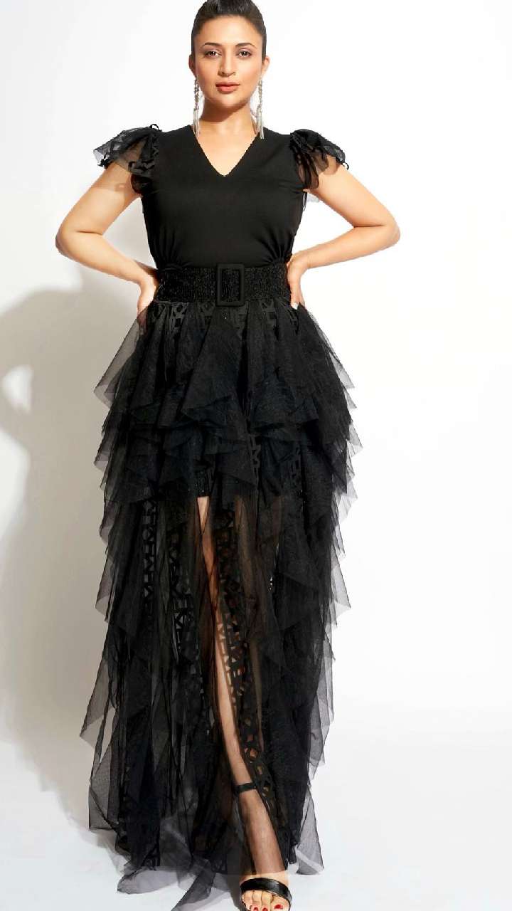 डीवा इस ब्लैक कलर के फ्रंट कट गाउन में बेहद बोल्ड नजर आ रही हैं। फैंस भी उनके इस लुक से अपनी नज़रें नहीं हटा पा रहे हैं।