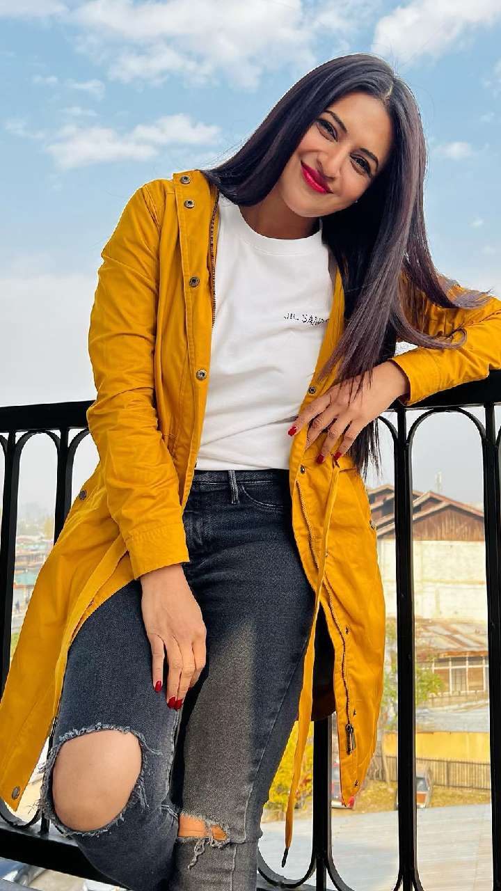 एक्ट्रेस का ये रिब्ड जींस, टी-शर्ट और शर्ट वाला कैजुअल सिंपल लुक भी बिंदास लग रहा है। दिव्यांका अपने हर लुक में छा जाती हैं।